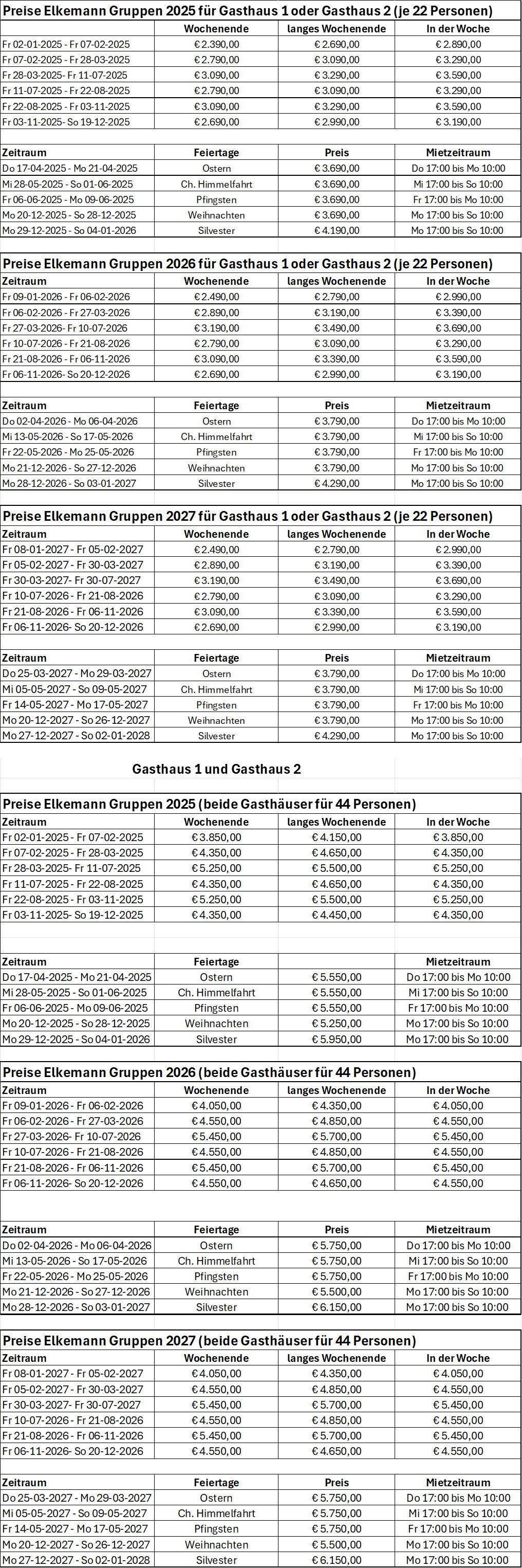 Landhaus Preise